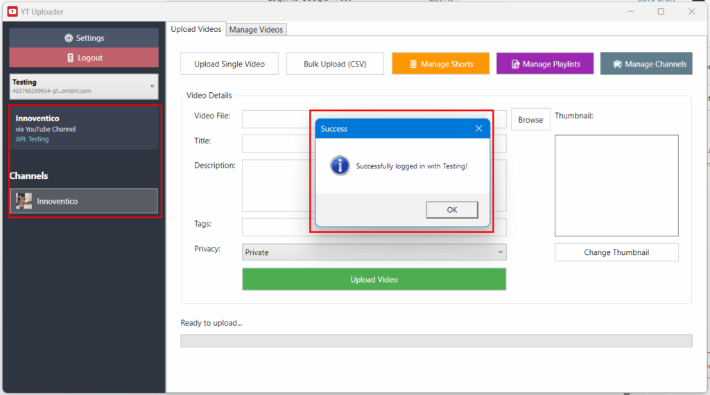 After successfully setting up your YouTube Data API v3 credentials, the next crucial step is logging into Google within YT Uploader to authenticate your account and access your YouTube channels.
